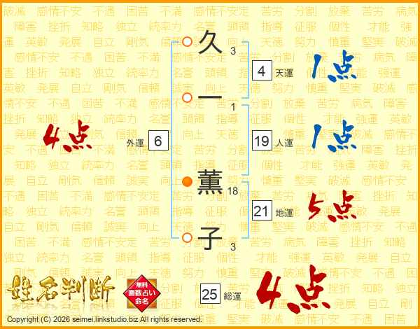 久一薫子さんの総運は25画の4点!