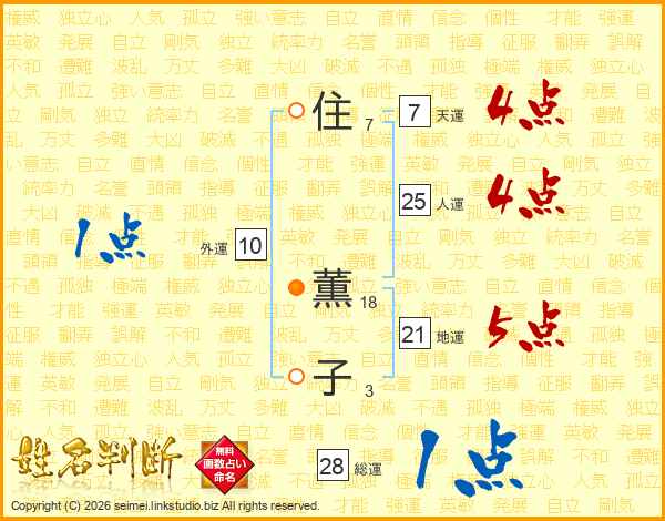 住(7画) 薫(18画)子(3画)