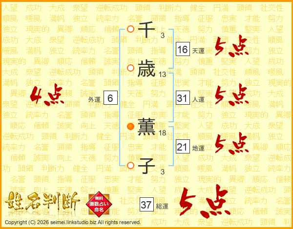 千歳薫子さんの総運は37画の5点!
