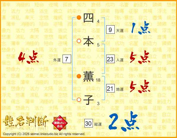 四(4画)本(5画) 薫(18画)子(3画)