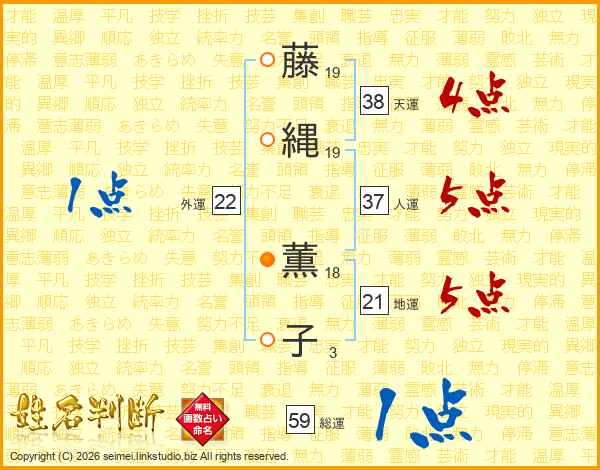 藤(19画)縄(19画) 薫(18画)子(3画)