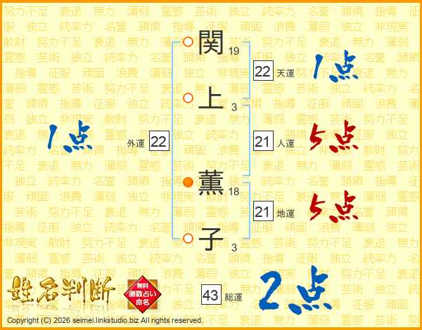 関上薫子さんの総運は43画の2点!