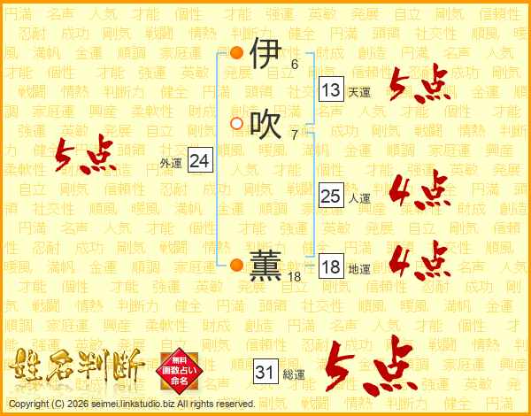 伊(6画)吹(7画) 薫(18画)