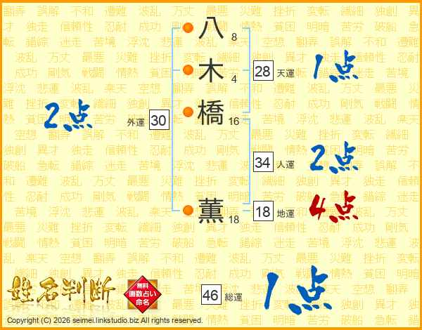 八木橋薫さんの総運は46画の1点!