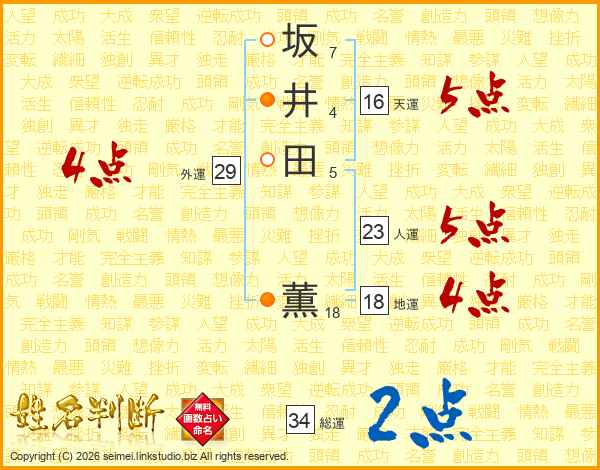 坂(7画)井(4画)田(5画) 薫(18画)