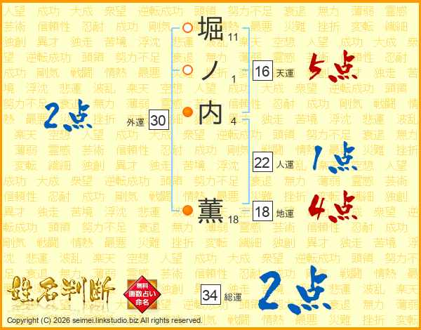 堀ノ内薫さんの総運は34画の2点!