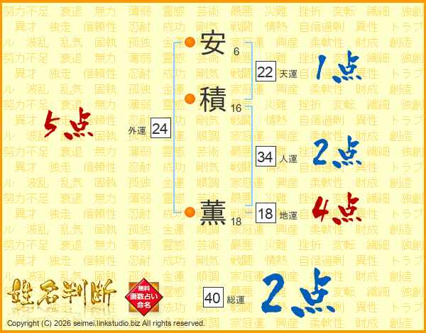 安積薫さんの総運は40画の2点!