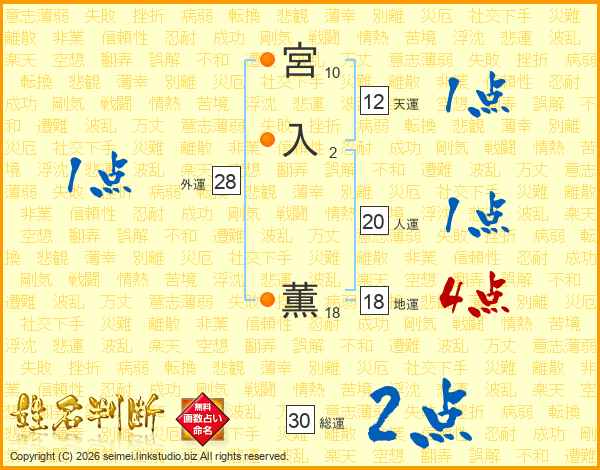 宮(10画)入(2画) 薫(18画)