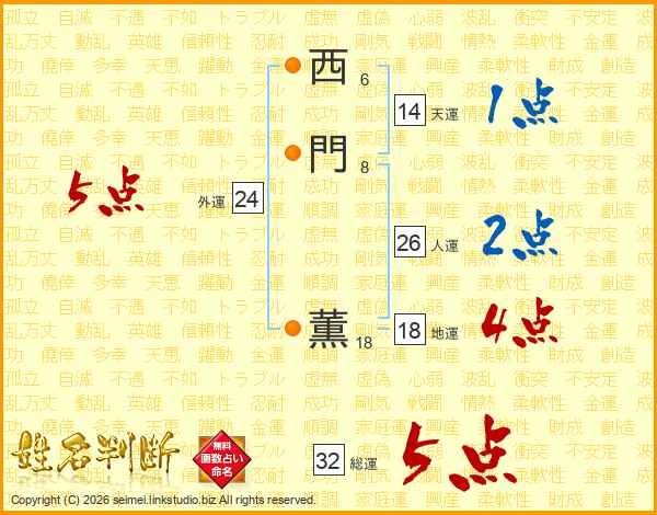 西門薫さんの総運は32画の5点!