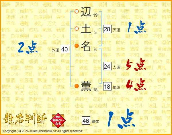 辺土名薫さんの総運は46画の1点!