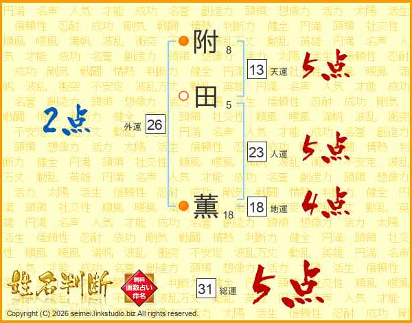附田薫さんの人運は23画の5点!
