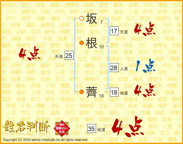 坂(7画)根(10画) 薺(18画)