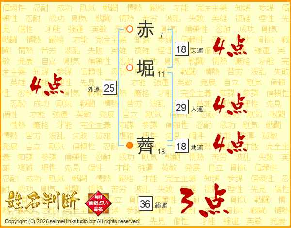 赤堀薺さんの人運は29画の4点!