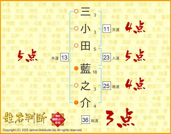 三小田藍之介さんの地運は25画の4点!