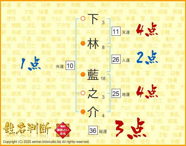 下(3画)林(8画) 藍(18画)之(3画)介(4画)