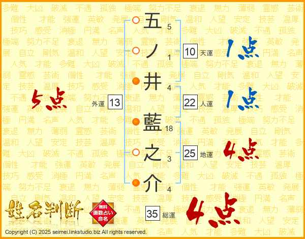 五ノ井藍之介さんの総運は35画の4点!