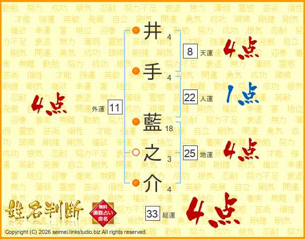 井(4画)手(4画) 藍(18画)之(3画)介(4画)