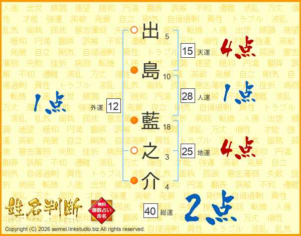 出島藍之介さんの総運は40画の2点!