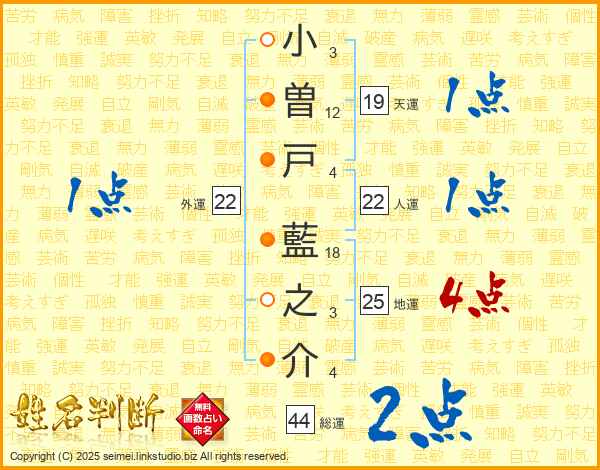 小(3画)曽(12画)戸(4画) 藍(18画)之(3画)介(4画)
