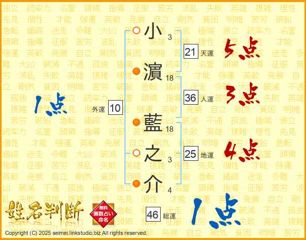 小(3画)濵(18画) 藍(18画)之(3画)介(4画)