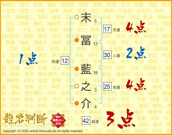 末(5画)冨(12画) 藍(18画)之(3画)介(4画)