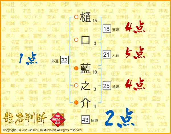 樋(15画)口(3画) 藍(18画)之(3画)介(4画)