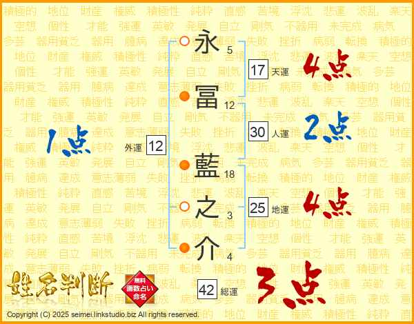 永(5画)冨(12画) 藍(18画)之(3画)介(4画)