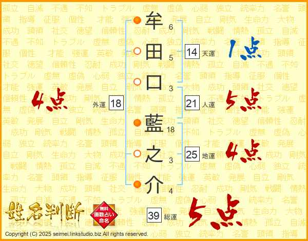 牟田口藍之介さんの総運は39画の5点!