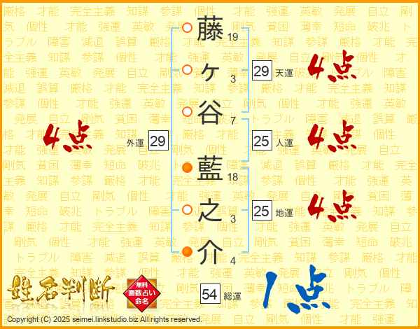 藤ヶ谷藍之介さんの天運は29画の4点!