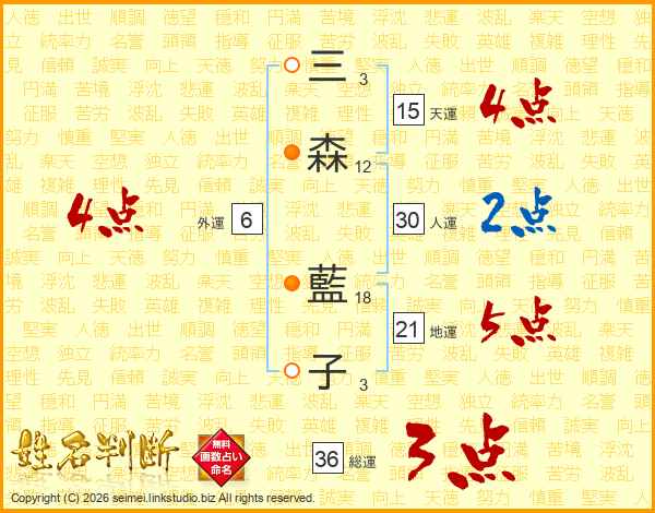 三森藍子さんの総運は36画の3点!