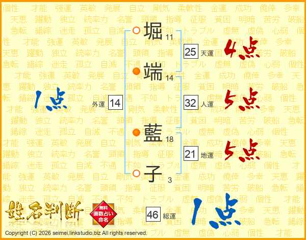 堀端藍子さんの天運は25画の4点!