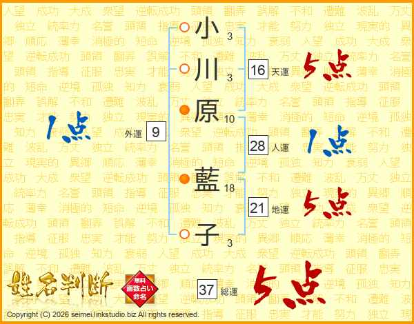 小川原藍子さんの総運は37画の5点!