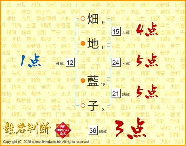 畑地藍子さんの総運は36画の3点!