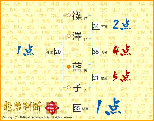 篠(17画)澤(17画) 藍(18画)子(3画)