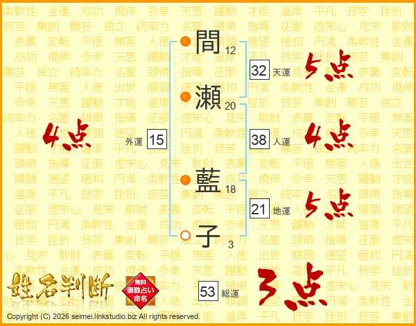 間瀬藍子さんの総運は53画の3点!