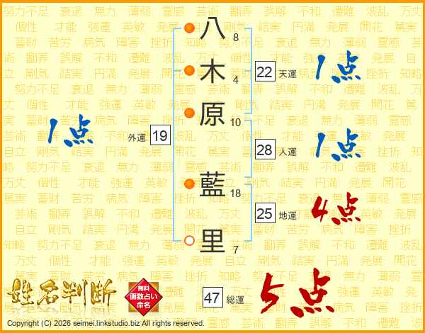 八木原藍里さんの総運は47画の5点!