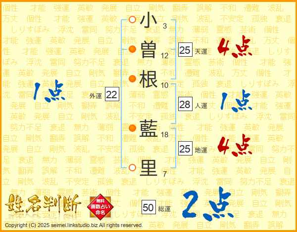 小曽根藍里さんの地運は25画の4点!