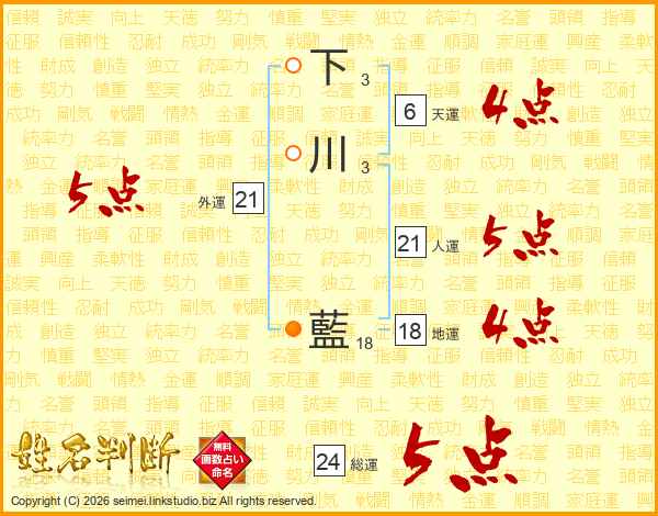 下川藍さんの総運は24画の5点!