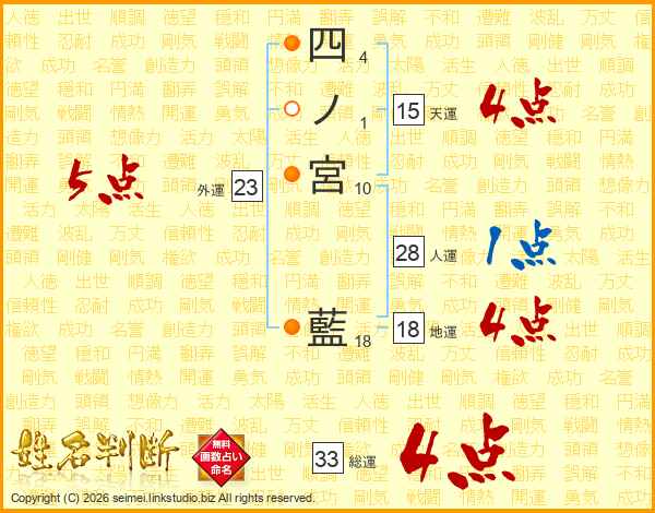 四(4画)ノ(1画)宮(10画) 藍(18画)
