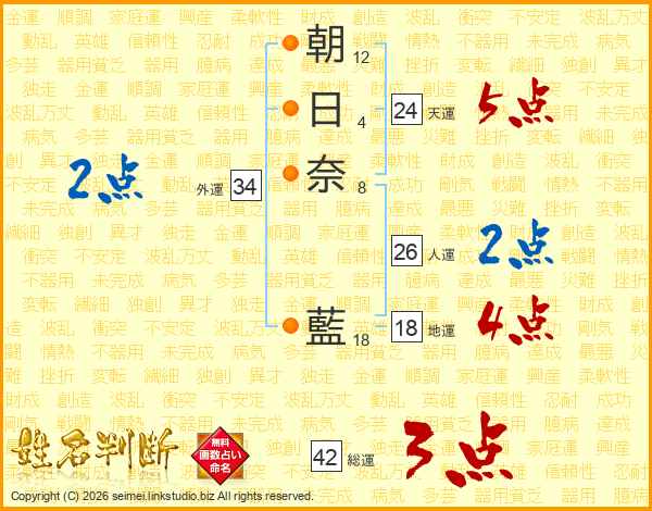 朝日奈藍さんの天運は24画の5点!