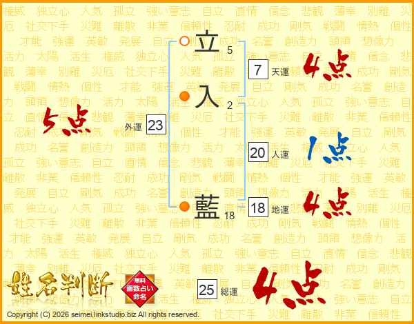立入藍さんの天運は7画の4点!