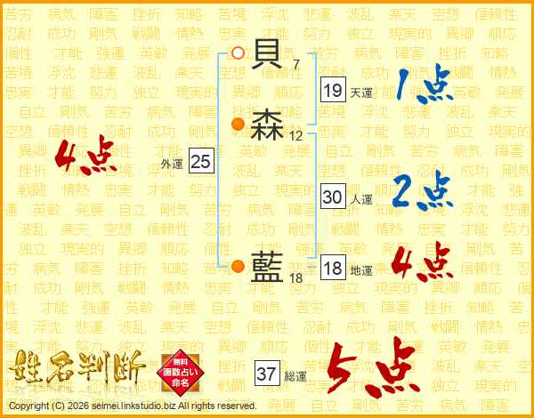貝森藍さんの総運は37画の5点!