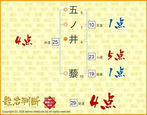 五ノ井藜さんの総運は29画の4点!