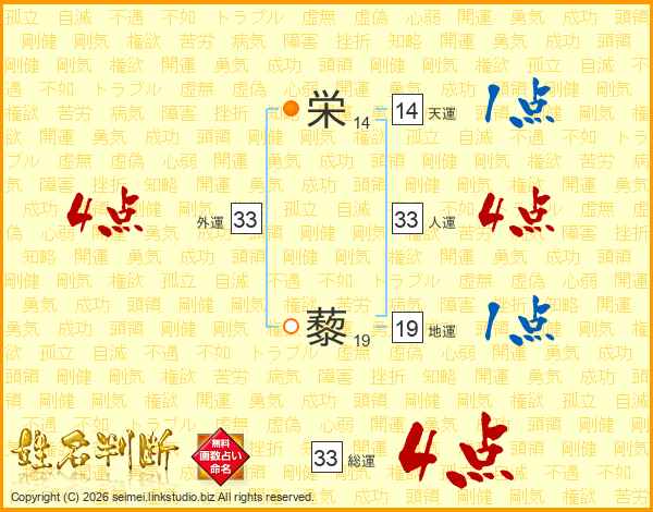 栄藜さんの総運は33画の4点!