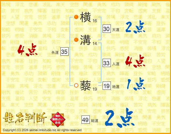 横溝藜さんの天運は30画の2点!