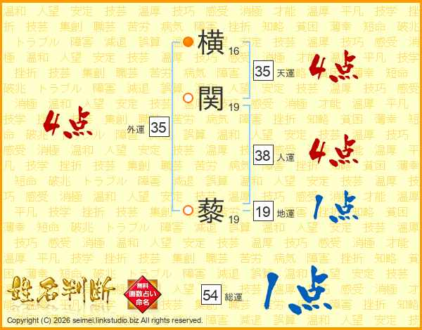 横関藜さんの人運は38画の4点!