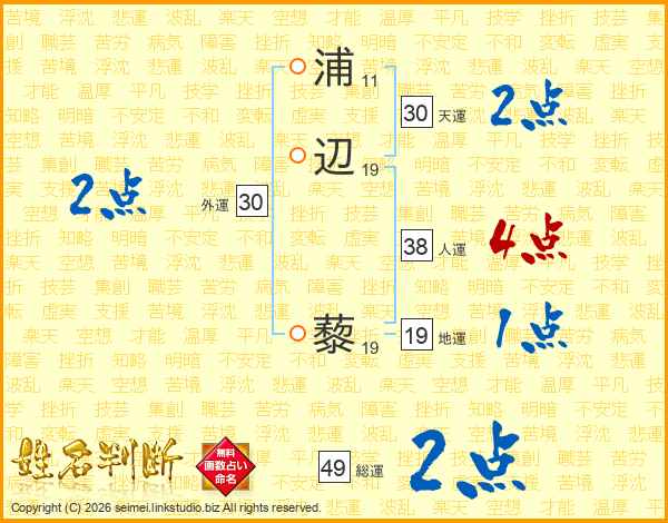 浦辺藜さんの総運は49画の2点!