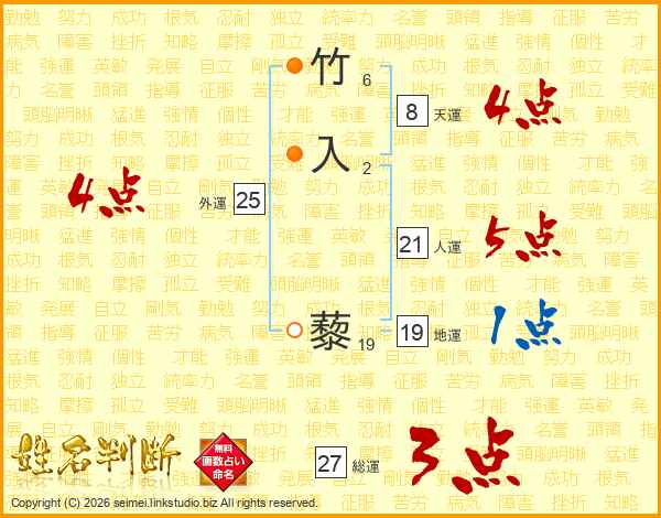 竹入藜さんの総運は27画の3点!