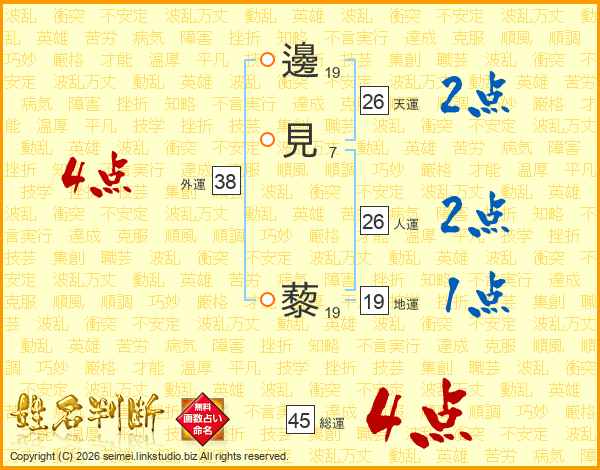 邊見藜さんの総運は45画の4点!
