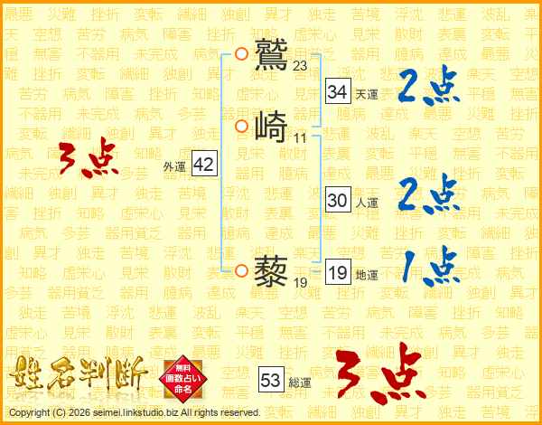 鷲崎藜さんの総運は53画の3点!